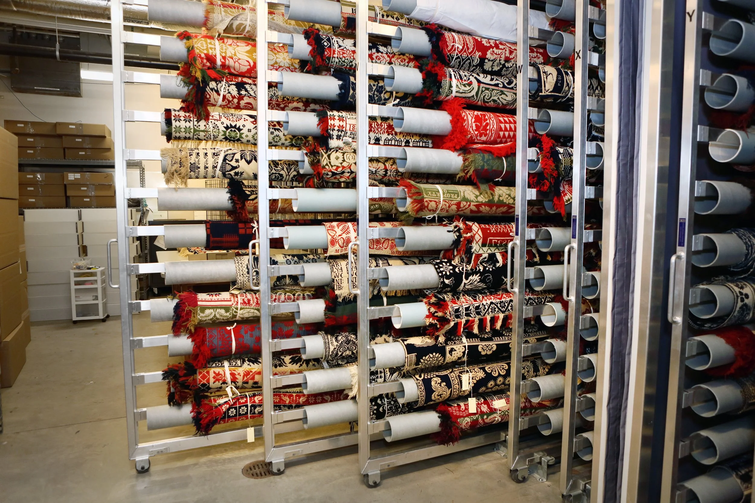 American coverlet weaving reached its peak in popularity from about 1830-1860. Our oldest dated coverlet in the McCarl Collection was made in 1809, and we also have more recent examples made in Appalachia in the twentieth century.